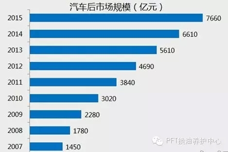从2012年至今,中国汽车后市场规模从2012年4690亿开始,逐年递增越1000亿,至今达7660亿,预计2015年底将接近8000亿。专家预测每年仍将以百分之29.8的速度递增,赶英超美突破万亿也是在近几年就能够得 到实现。