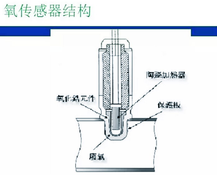1.主氧传感器包括一根加热氧化锆元件的热棒,加热棒受(ECU)电脑控制,当空气进量小(排气温度低)电流流向加热棒加热传感器,使能精确检测氧气浓度。